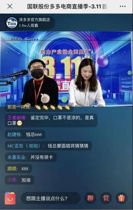 為大力支援產(chǎn)業(yè)鏈復(fù)工復(fù)產(chǎn),同時(shí)積極探索B端直播帶貨模式,國(guó)聯(lián)股份多多電商于3月11日正式開啟工業(yè)品/原材料直播季。旗下各多多平臺(tái)分別完成首秀,3月4場(chǎng)直播總體訂單超過(guò)3.89億元,觀眾超過(guò)10.6萬(wàn)人次。