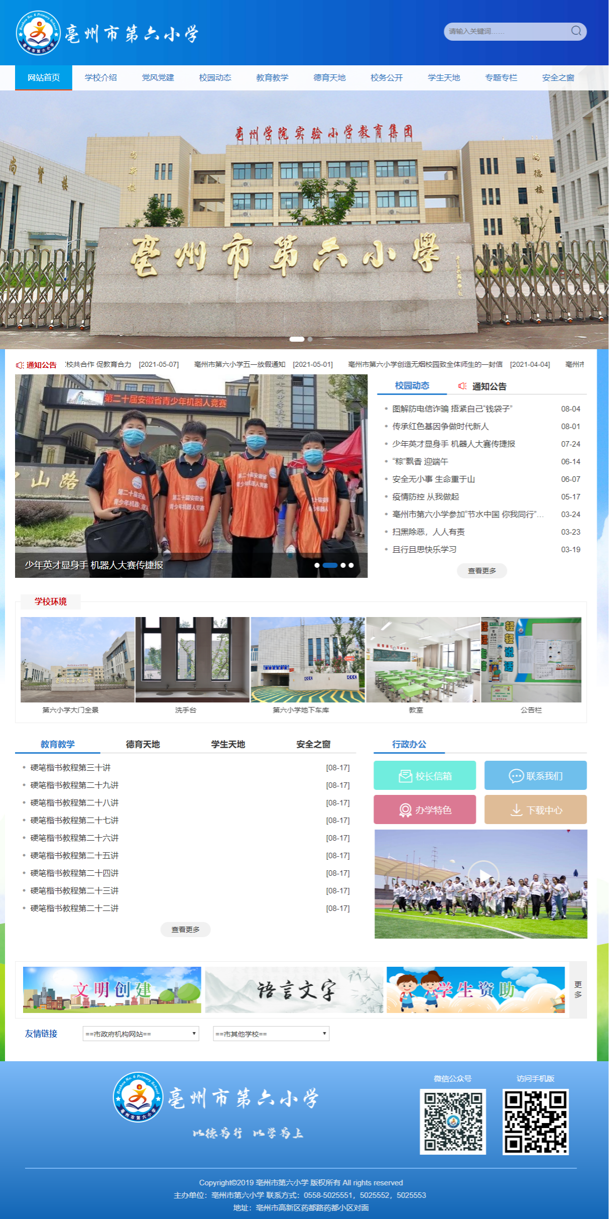 亳州市第六小學(xué)&mdash&mdash暨亳州學(xué)院實(shí)驗(yàn)小學(xué)教育集團(tuán)分校,是一所全日制、現(xiàn)代化、智慧化的公辦小學(xué)??傆玫孛娣e約50畝,總建筑面積約24000平方米,總投資1億元,辦學(xué)規(guī)模48個班,可容納2400名學(xué)生。??亳州市第六小學(xué)是一所建設(shè)高標(biāo)準(zhǔn)、設(shè)施高要求的智慧化校園。學(xué)校以&ldquo以德為行,以學(xué)為上&rdquo為校訓(xùn),把&ldquo育人&rdquo作為一切工作的出發(fā)點(diǎn)和落腳點(diǎn),營造濃郁的學(xué)校文化氛圍,促進(jìn)孩子全面發(fā)展、個性發(fā)展。學(xué)校致力于打造適合每個孩子的特色教育,把每個孩子放在心上,讓孩子靈性生...